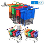 They come in four different sizes and always remain upright, making it easy to fill and sort your groceries as you shop or at the checkout. The bags easily separate when you place them in the car and roll away into a neatly when not in use.