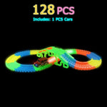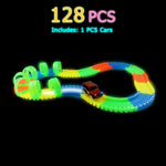 EXPERIENCE THE GLOW IN THE DARK MAGIC: This 600pk glow in the dark race car track for kids and adults includes light up electric toy car, bridges and ramps to make custom race car track obstacles.