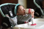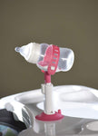 The Hands-Free Feeding Bottle Holder is a holder for baby bottles that will keep almost any bottle in place so a baby can't throw it across the room during their feedings and allows a baby to hold a bottle with little or no assistance. It has a 'cradle' that accomodates most bottles, providing nurturing parents that their baby is fed without the constant disruption of bottles being dropped or thrown. This ensures that baby is fed in a timely manner.
